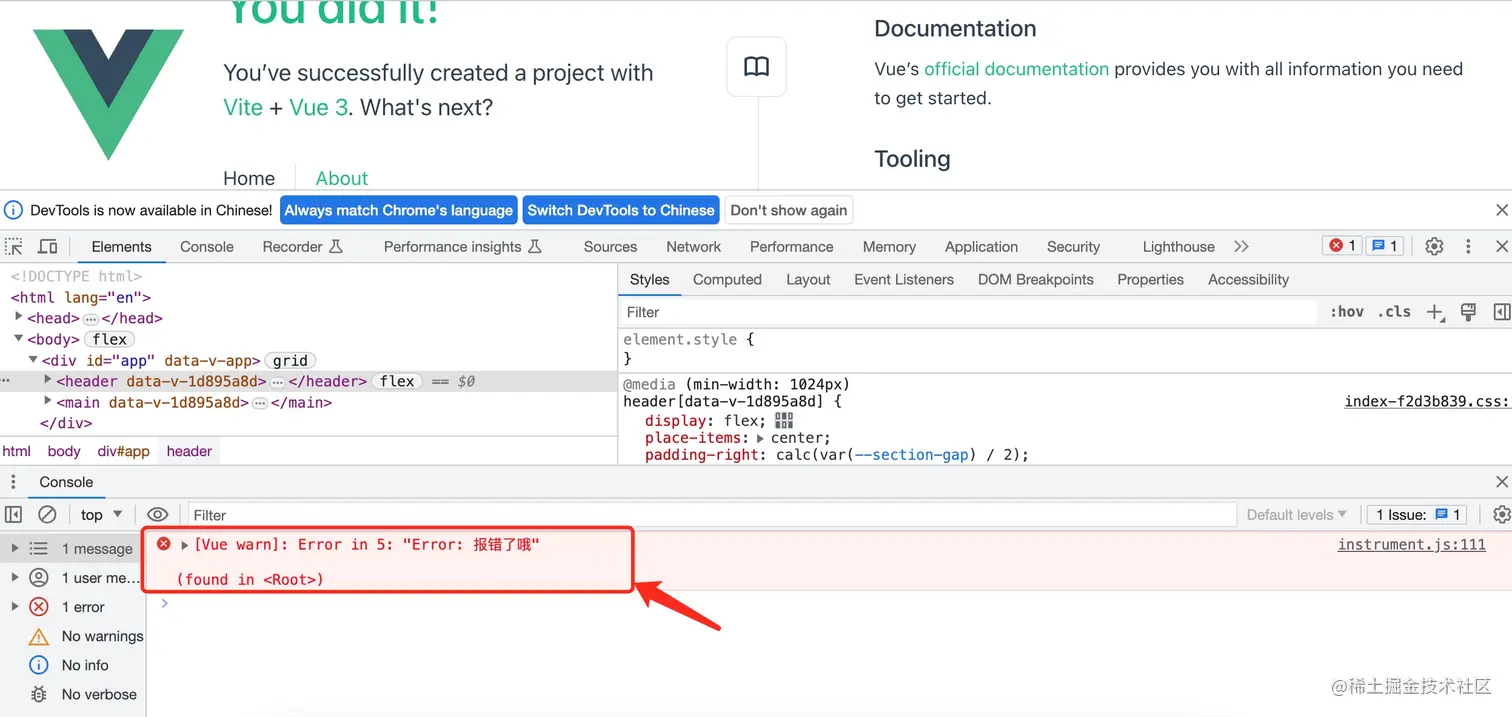 step3.控制台查看报错信息