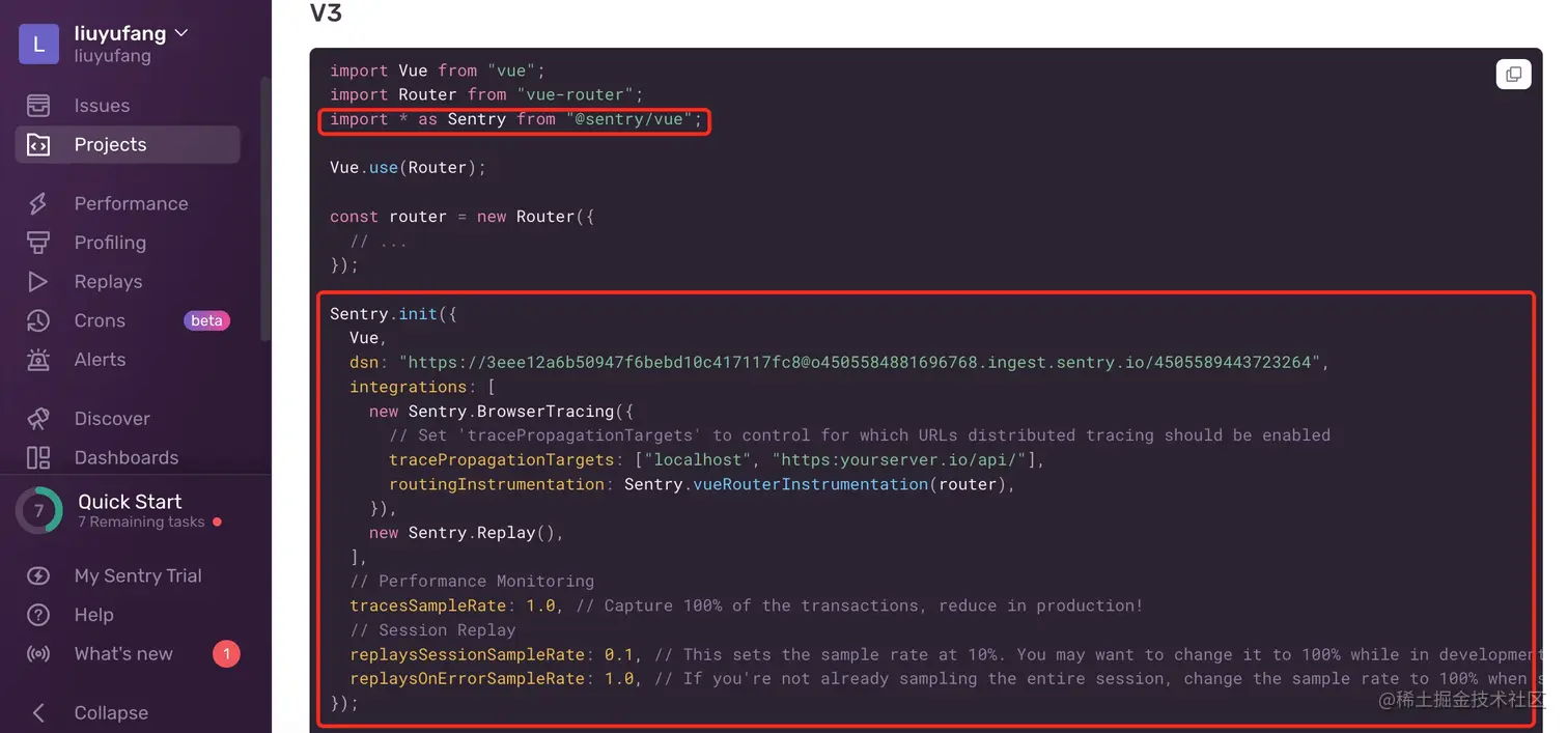 step4.在Vue项目的main.ts中引用Sentry提供的初始化代码