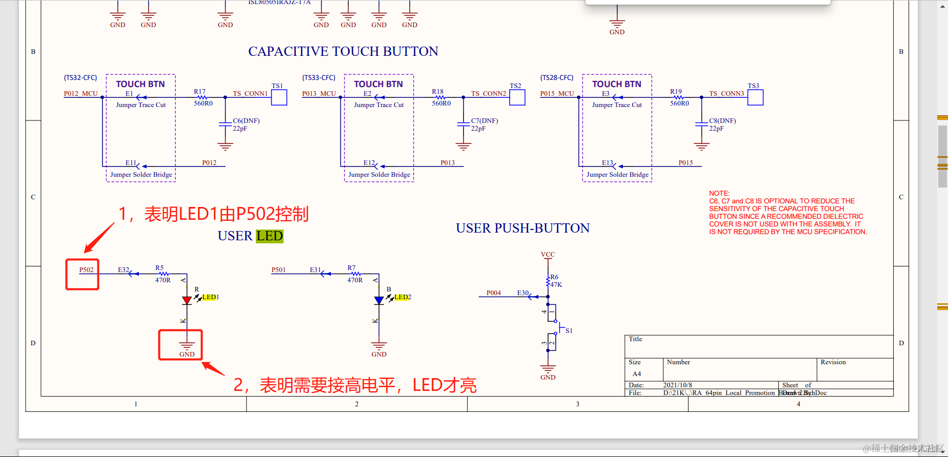 (3)此时我们需要打开原理图,因为我们需要知道LED是由哪一个引脚控制,需要给什么电平才能够亮灯。