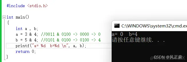 b = 5 & 4; //0101 & 0100 -> 0100 -> 4