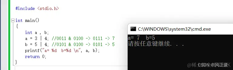 a = 3 | 4; //0011 & 0100 -> 0111 -> 7