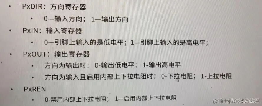 PxIN,只可读取,不能修改。如果bit为0表示检测到低电平,bit为1,表示检测到高电平。