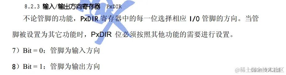 我们看数据手册,前几张博客也说了。如果P2DIR为高电平表示输入,P2DIR为低电平表示输出。