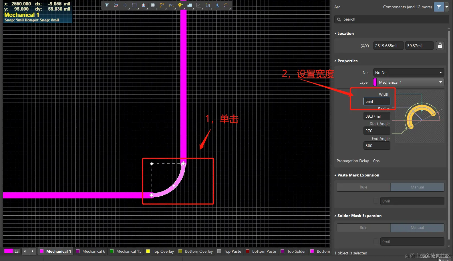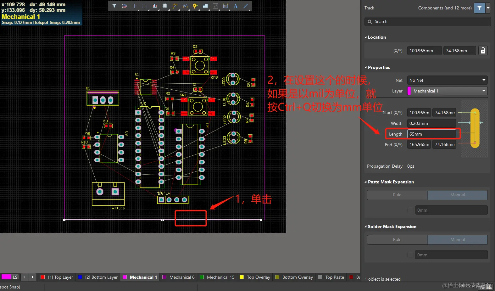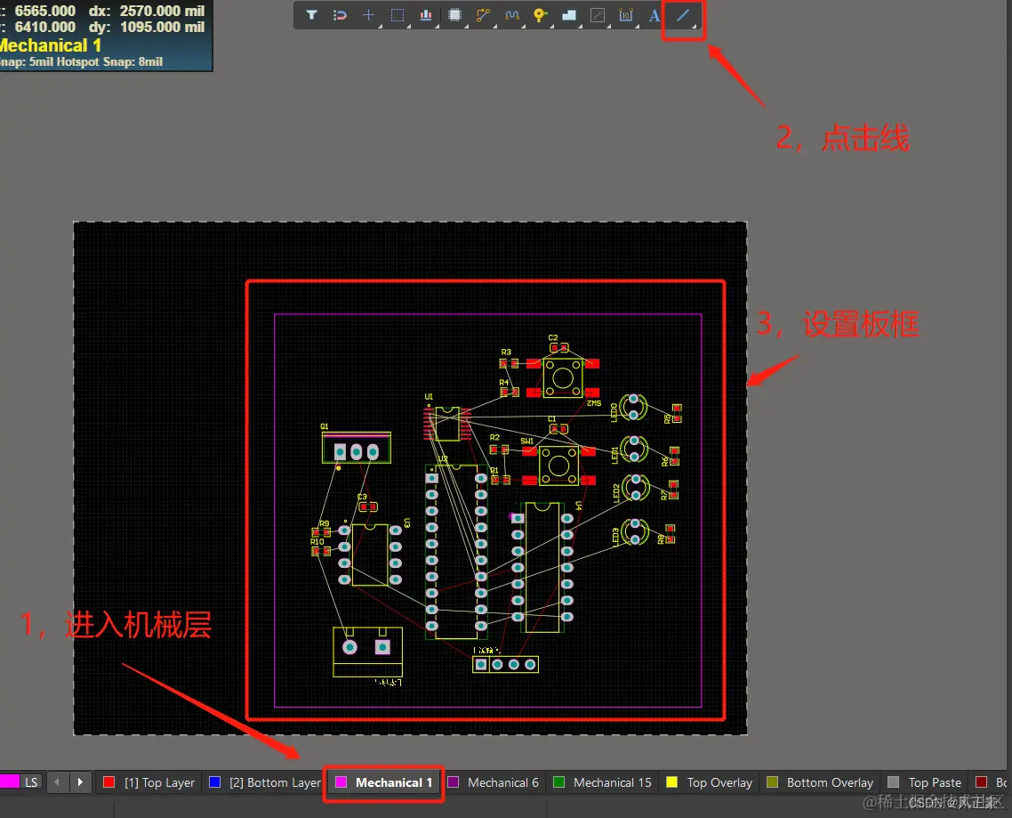 (2)在绘制PCB的时候有两种单位,一个是mil,一个是mm。我们在设置板框的时候都是以mm为单位。其他时候基本都是以mil为单位。