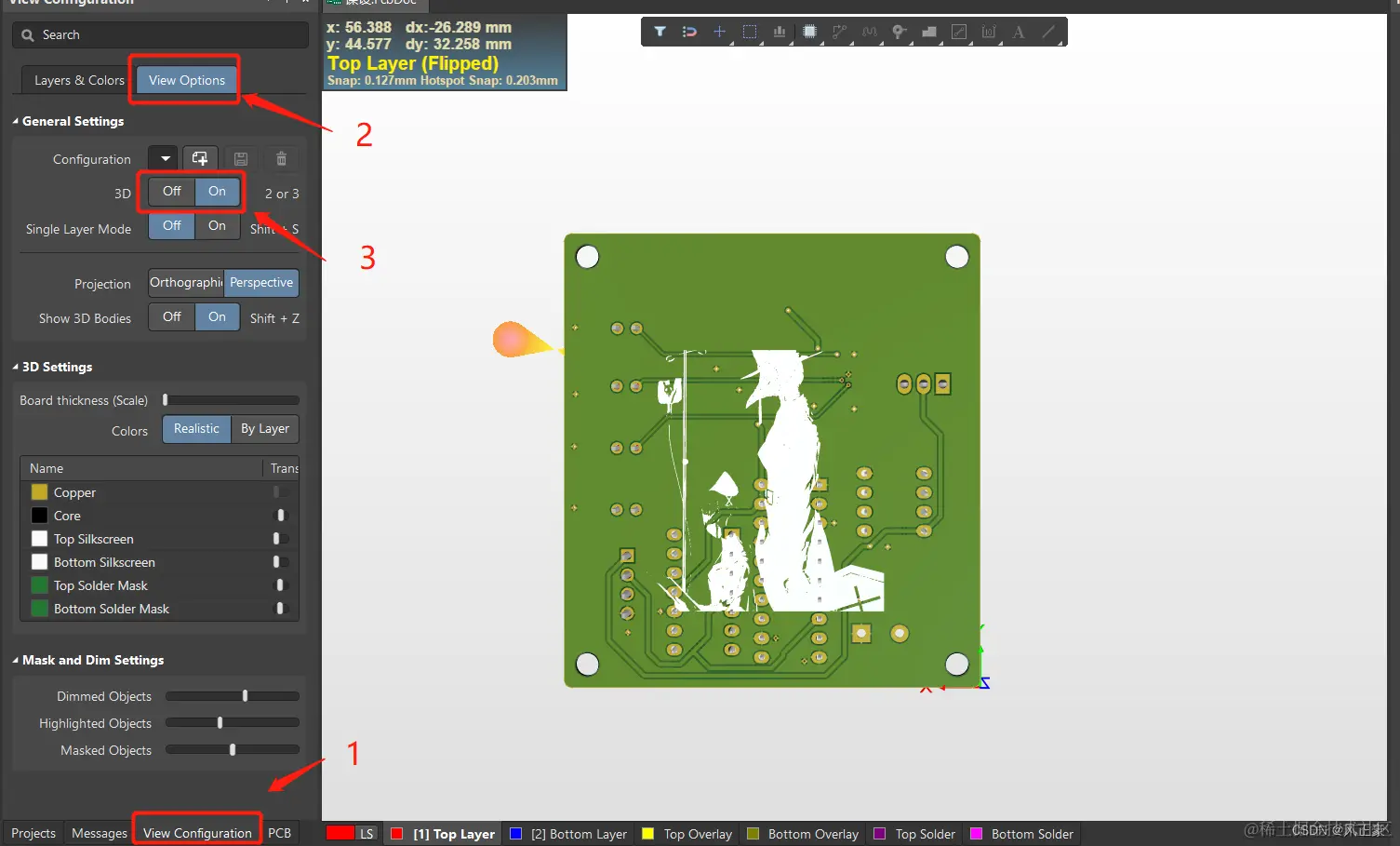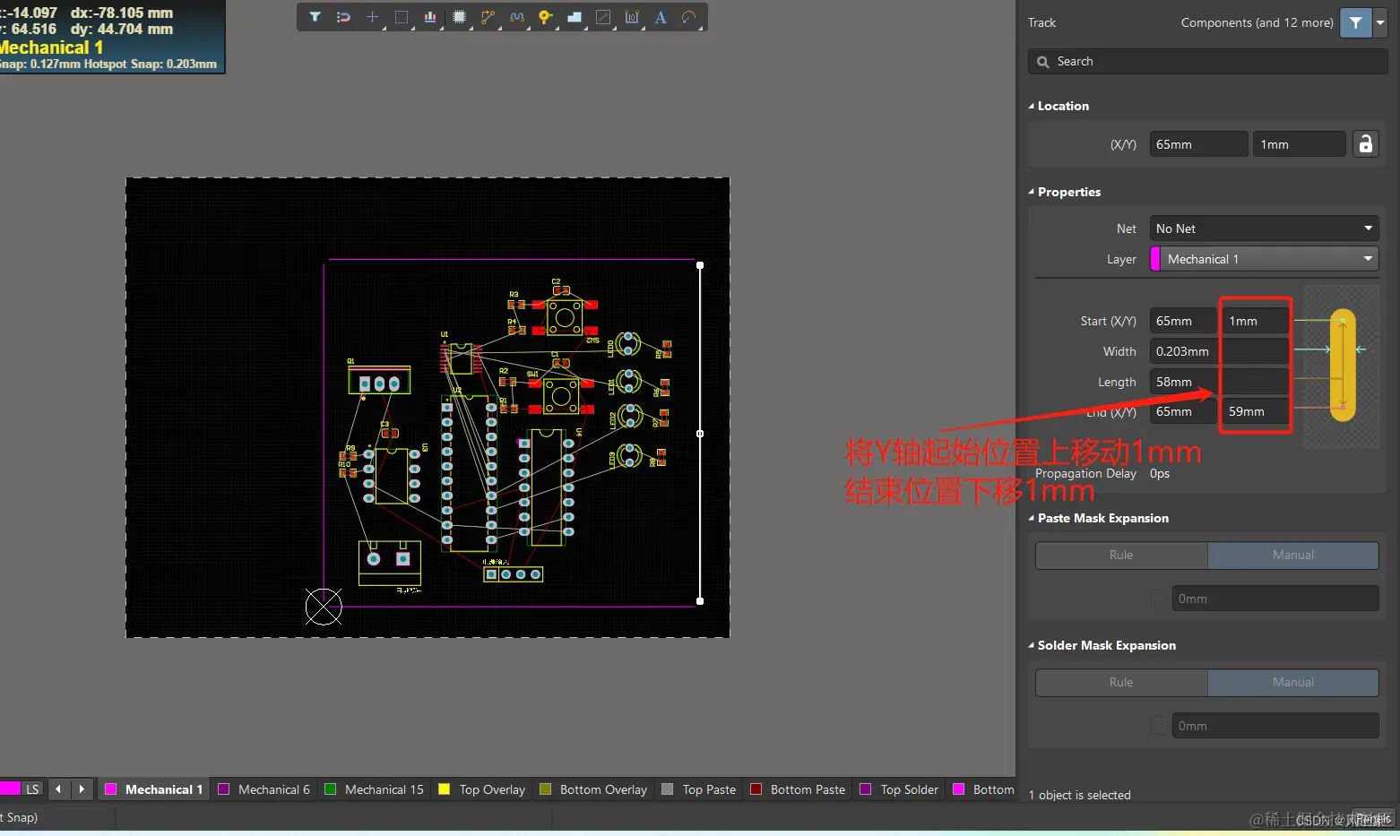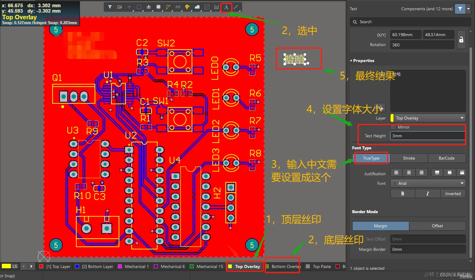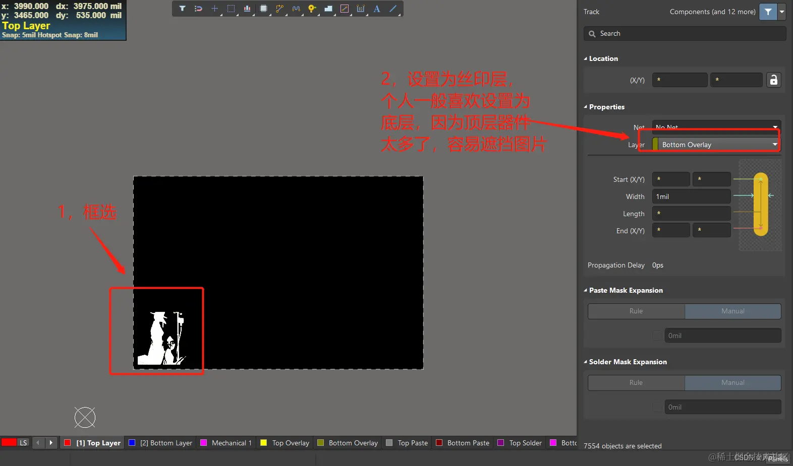 (2)因为我们生成的板子其实是在顶层的,所以我们需要将他改为丝印层。