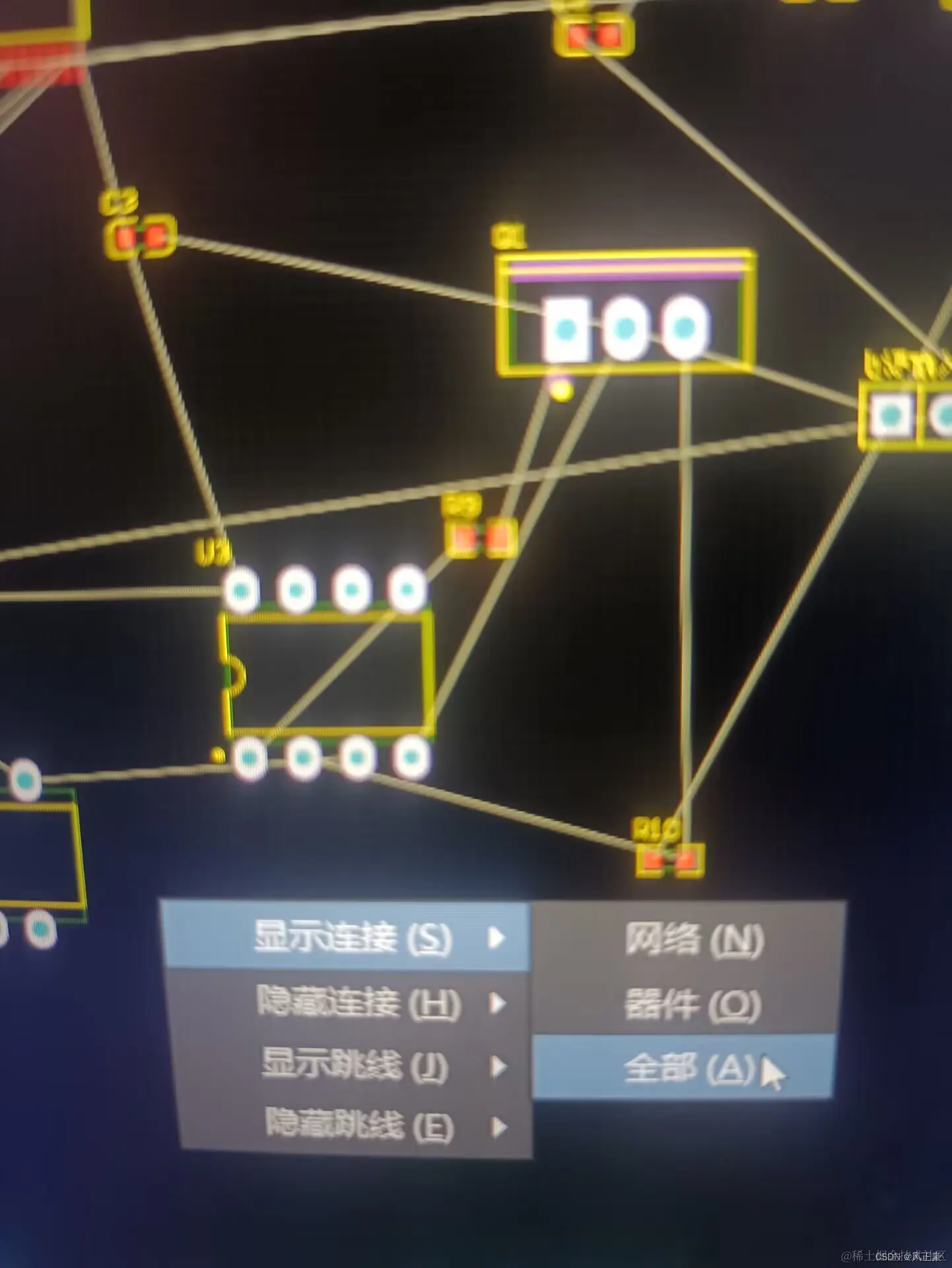 (2)在PCB中,按N键就可以设置飞线的连接隐藏或者显示了。