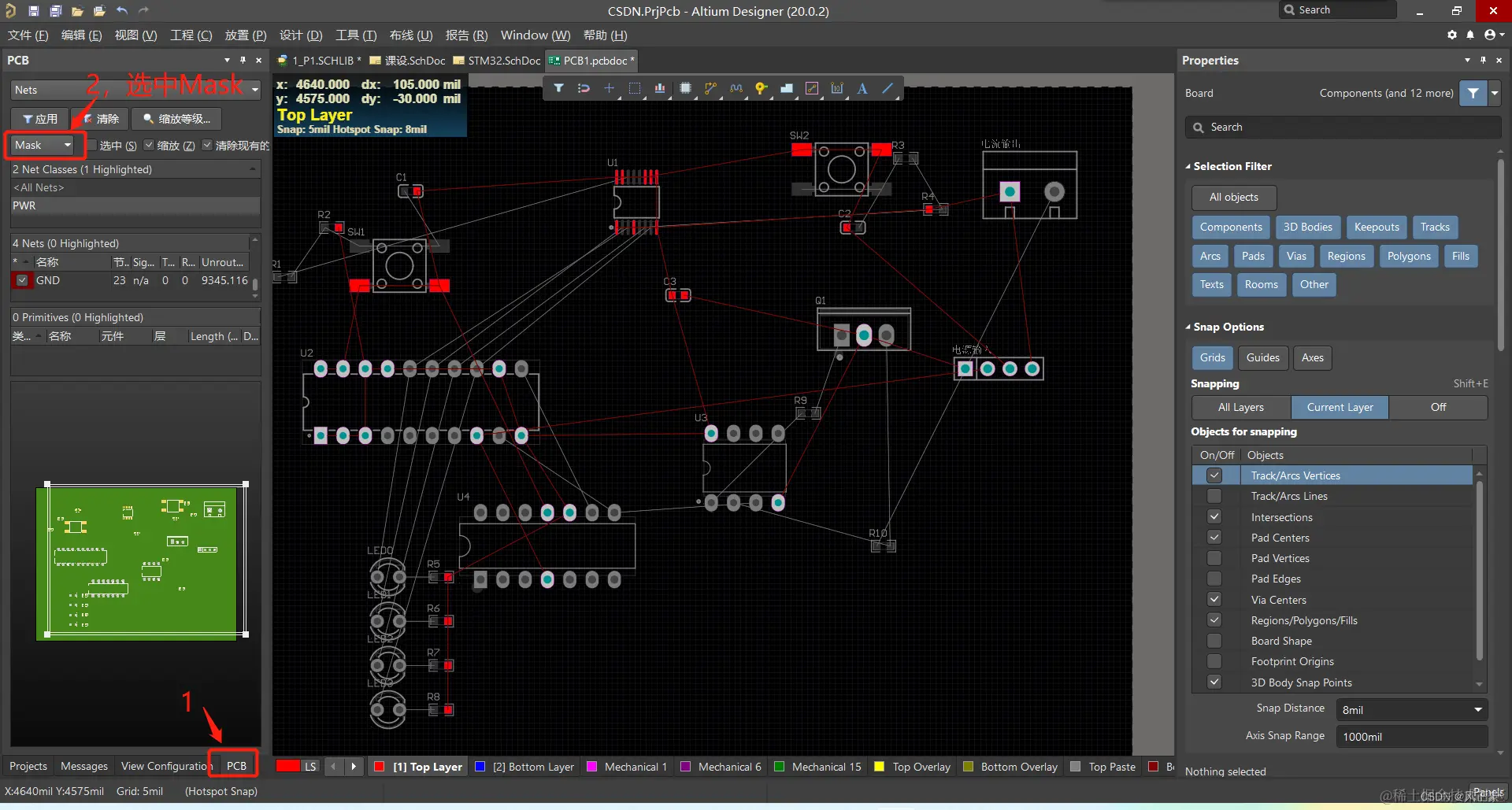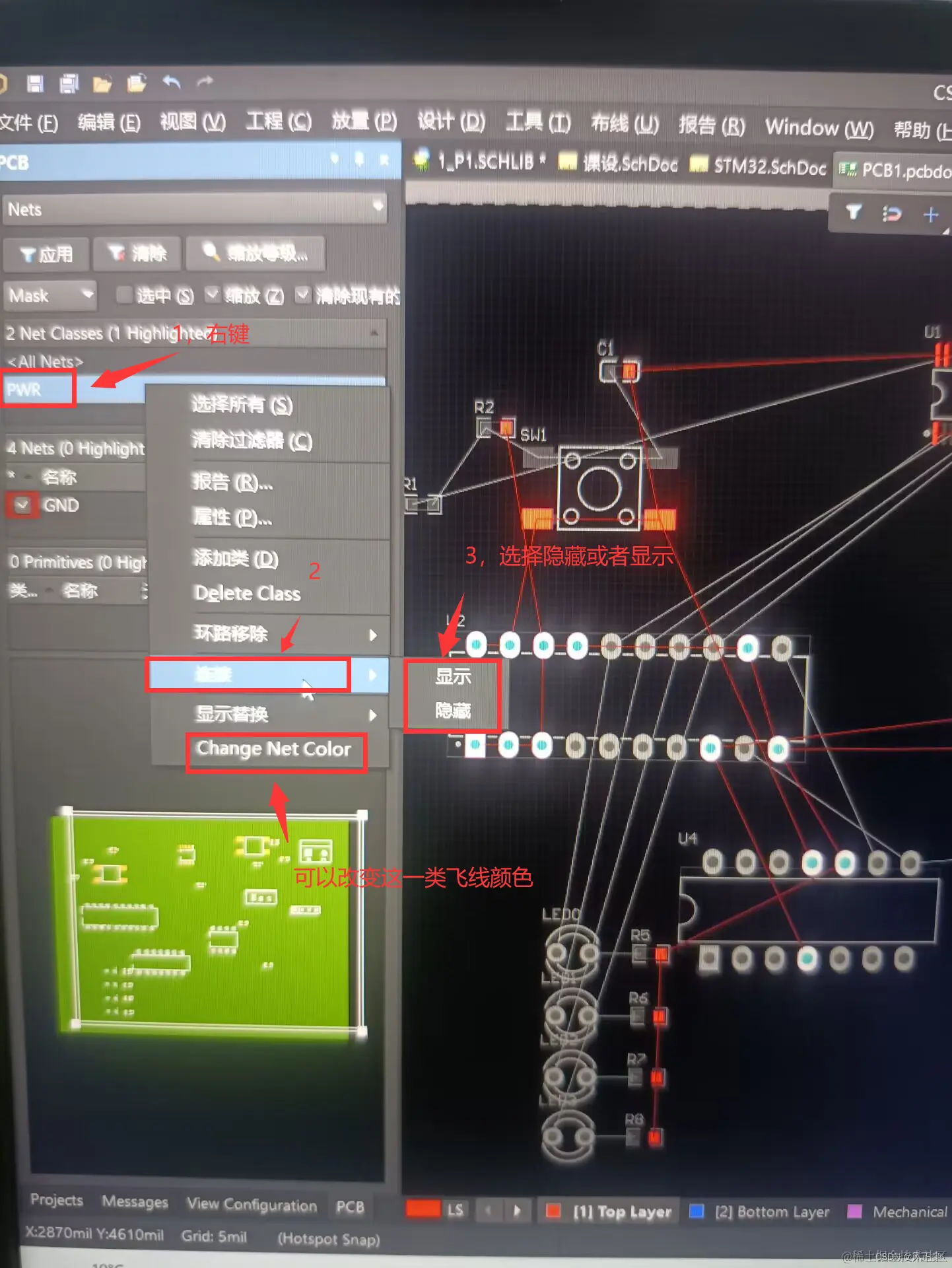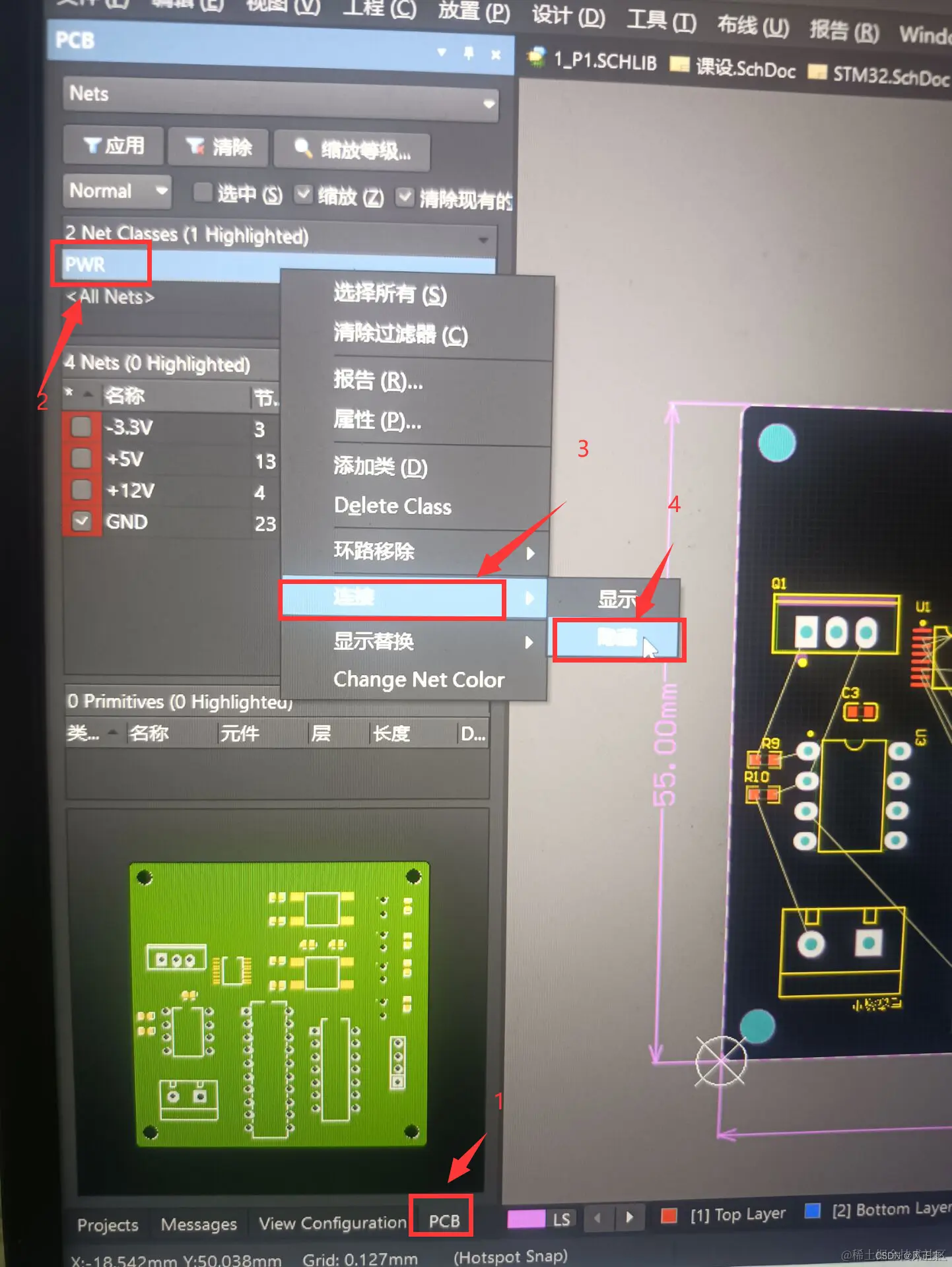 (4) 如果是选择网络,那么就是将一类型网络都隐藏。比如选择网络——>点击GND,就可以将GND全部隐藏。