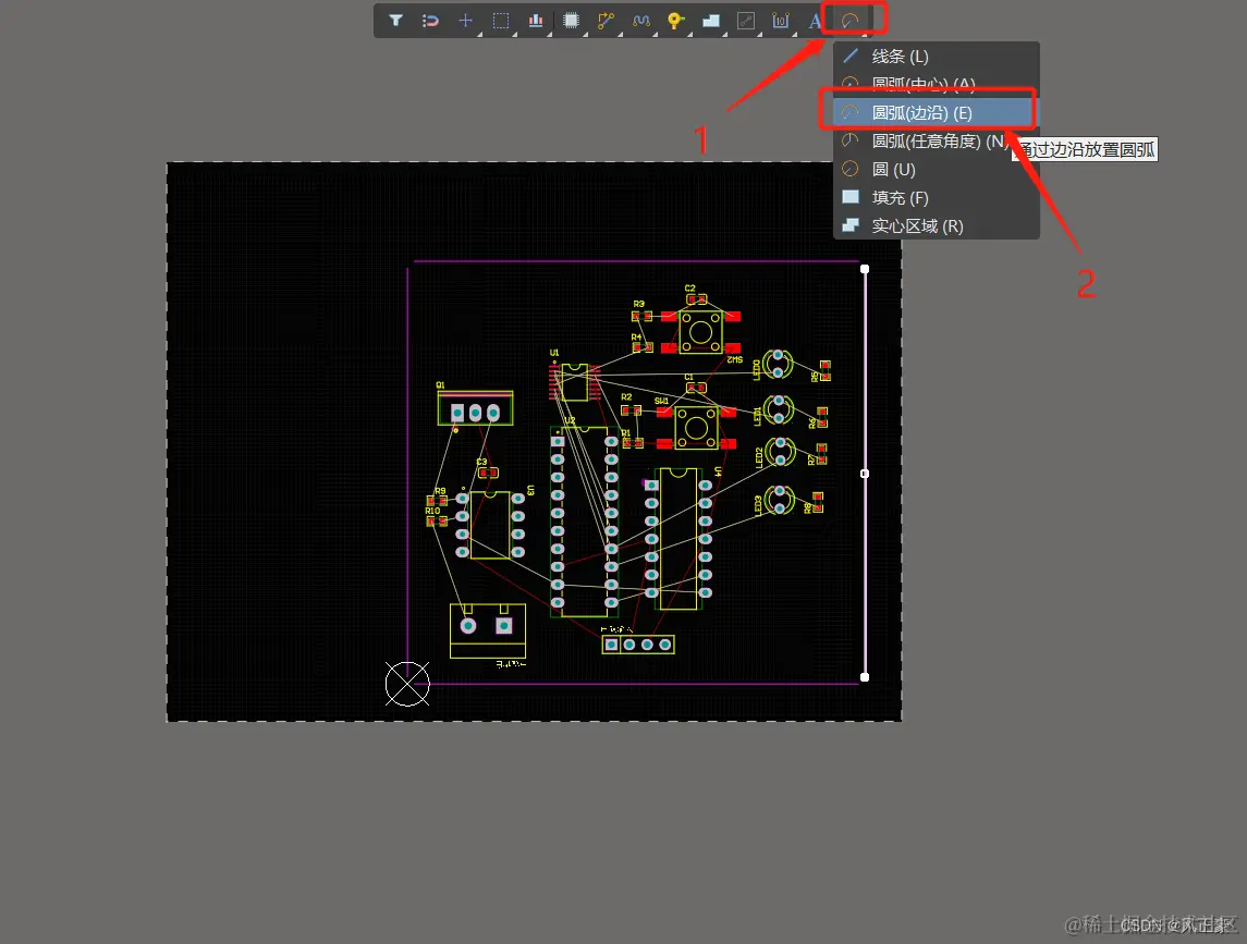 (3)我们摆放位置的时候,需要注意要外接电源,需要对外输出的器件,按键,需要摆放在PCB的边缘处。