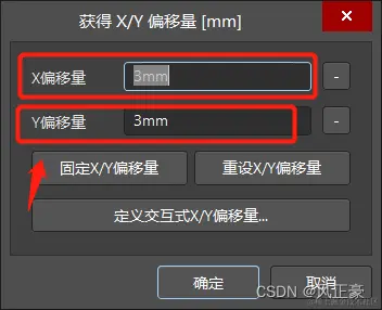 (1)将定位孔设置到四角,我们将它的圆心偏移到距离圆点X3mm,Y3mm的地方。