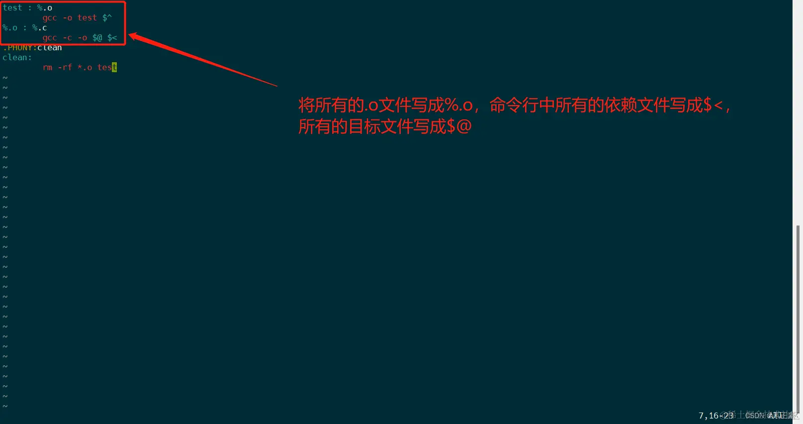 虽然%.o可以表示所有的.o文件,但是 在第一行不能使用%.o代替,必须一个一个的.o文件写出来! 这个时候有人会抱怨还是太麻烦了,别慌,后面讲解进阶编写(3)的时候会有解决办法。