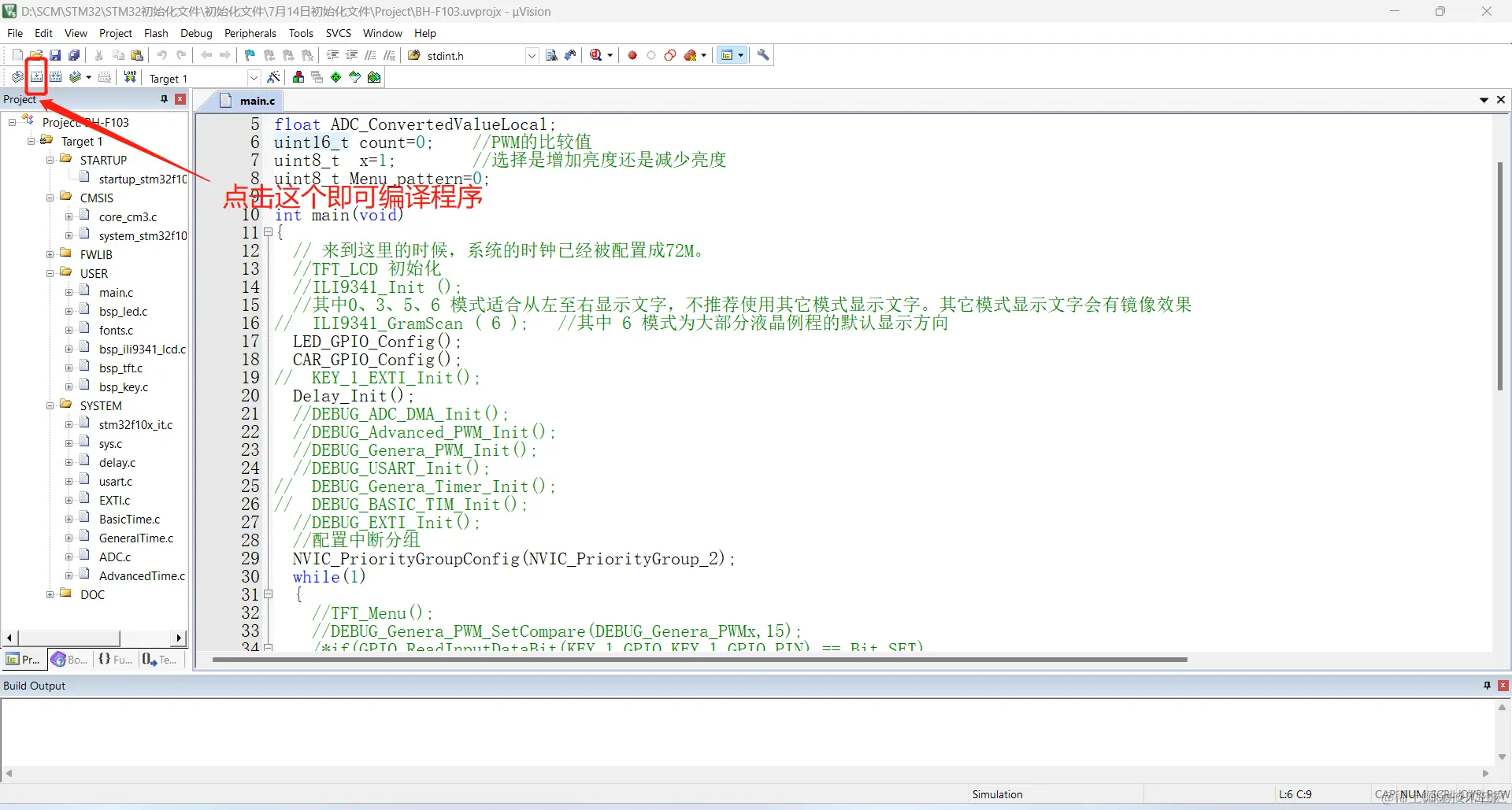 (1)在Linux中,没有比较好的图形化编译工具。如果我们是在windows上编写程序,以keilMDK举例,只用点击左上方的编译按键即可编译程序。