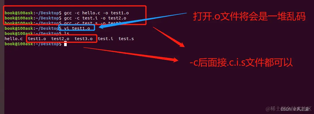 (2)格式: gcc -c .c文件/.i文件/.s文件 -o .o文件