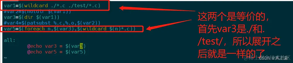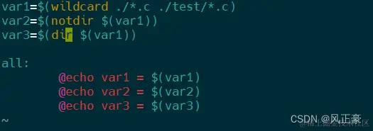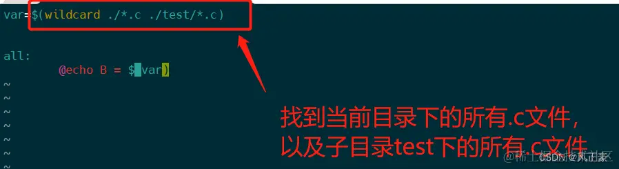 var1 =$(wildcard ./*.c) #获取当前目录下的所有.c文件