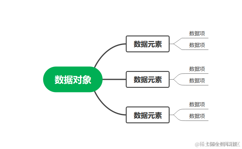 数据对象: 性质相同的数据元素的集合,数据的子集。因为一般处理的数据元素具有相同性质,所以一般都将数据对象简称为数据。