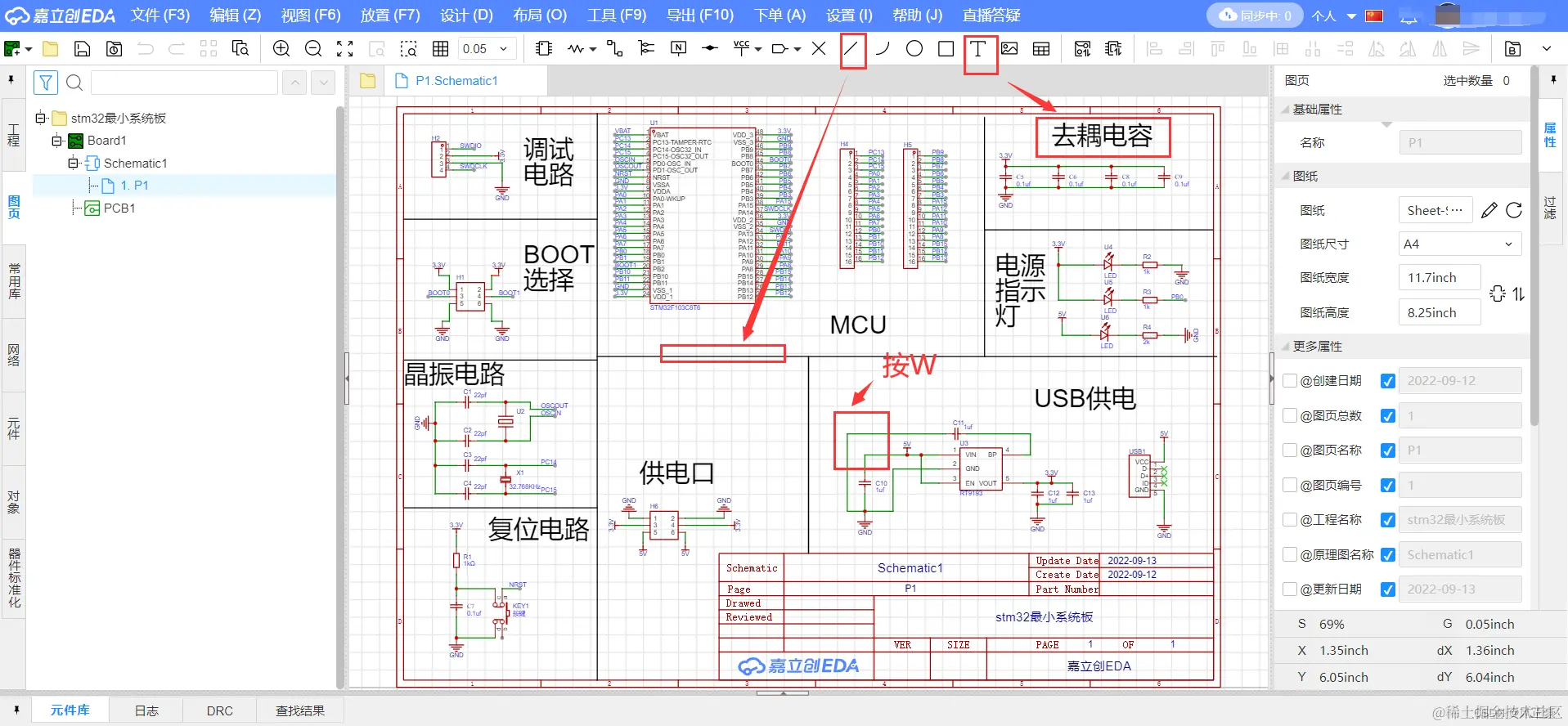 立创EDA绘制PCB只有两步,原理图绘制和PCB设计。 如果是使用的AD绘制PCB可能需要多原理图库和PCB库的绘制,但是立创EDA已经帮我们处理了,不用担心。