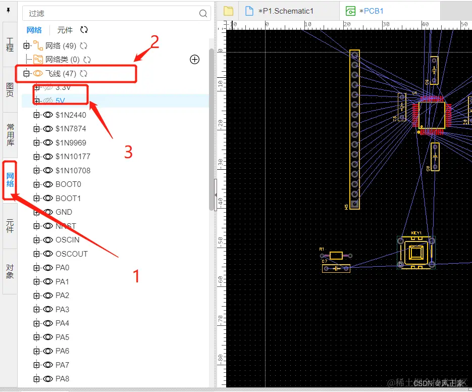 (2)这个线有什么用呢?有了这个线,我们在绘制PCB的时候,就能够更加方便的进行绘制。不需要画一点点PCB,看一下原理图。