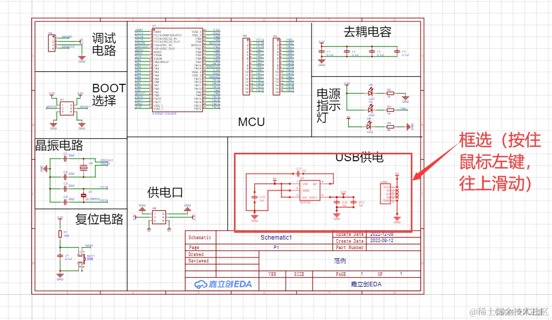 这个时候我们需要切换到原理图界面,框选我们之前选中的分区部分。