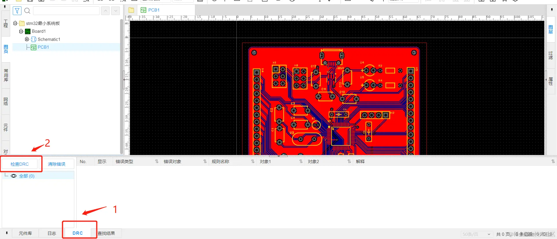 注意,有时候,我们在立创广场上直接用别人的板子进行二次修改,DRC发现错误。可能是因为你的设计规则和他的不一样。这个新手不建议过分接触。