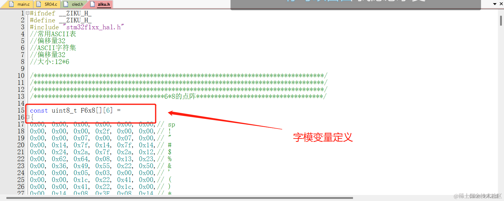 (3)然后我突然想到了去字模库看看。后面发现,他将所有的字模变量定义都放在了.h文件。