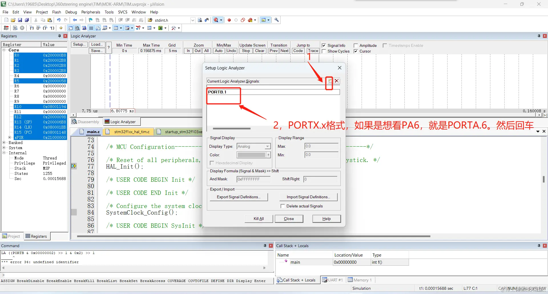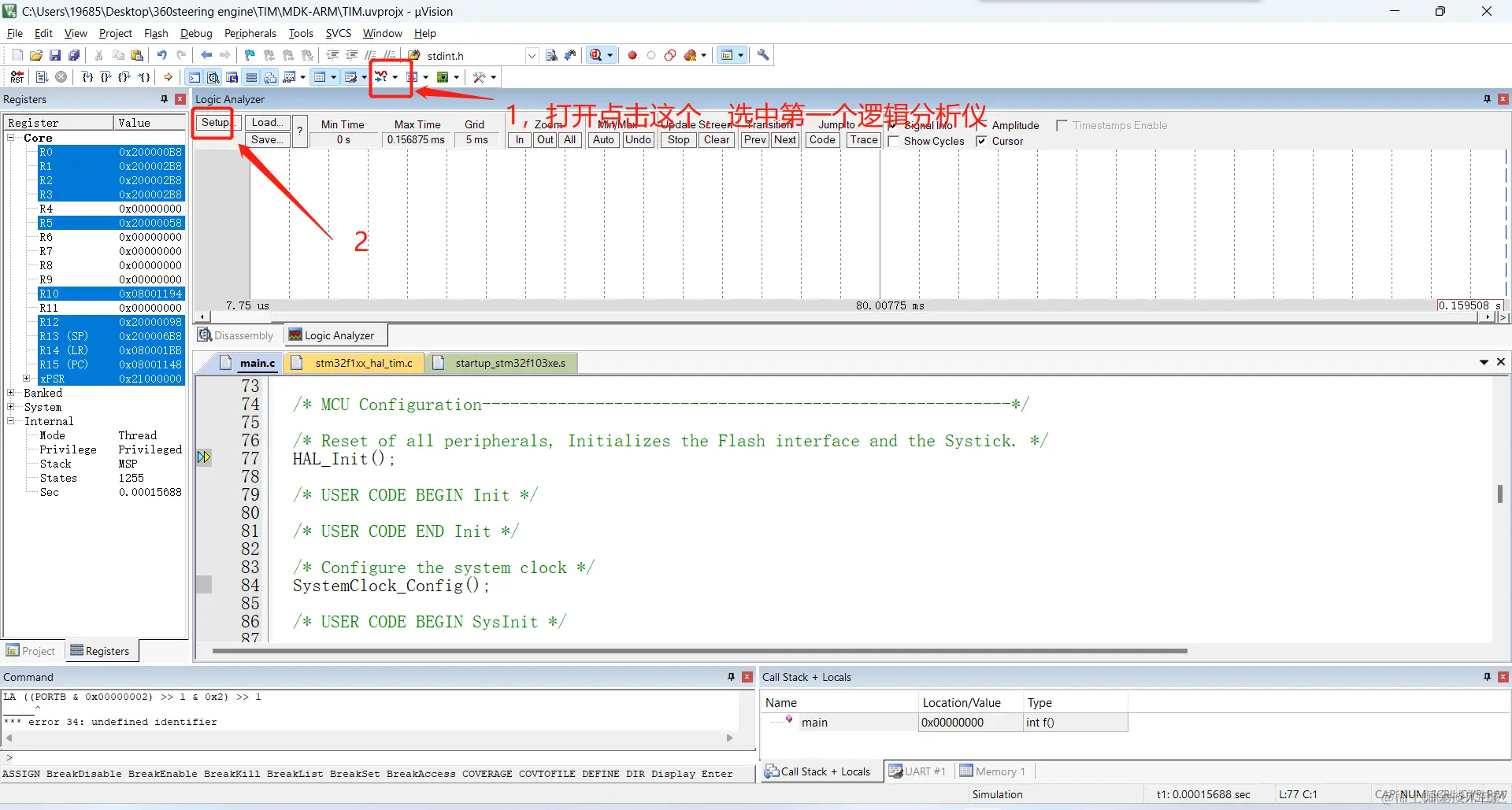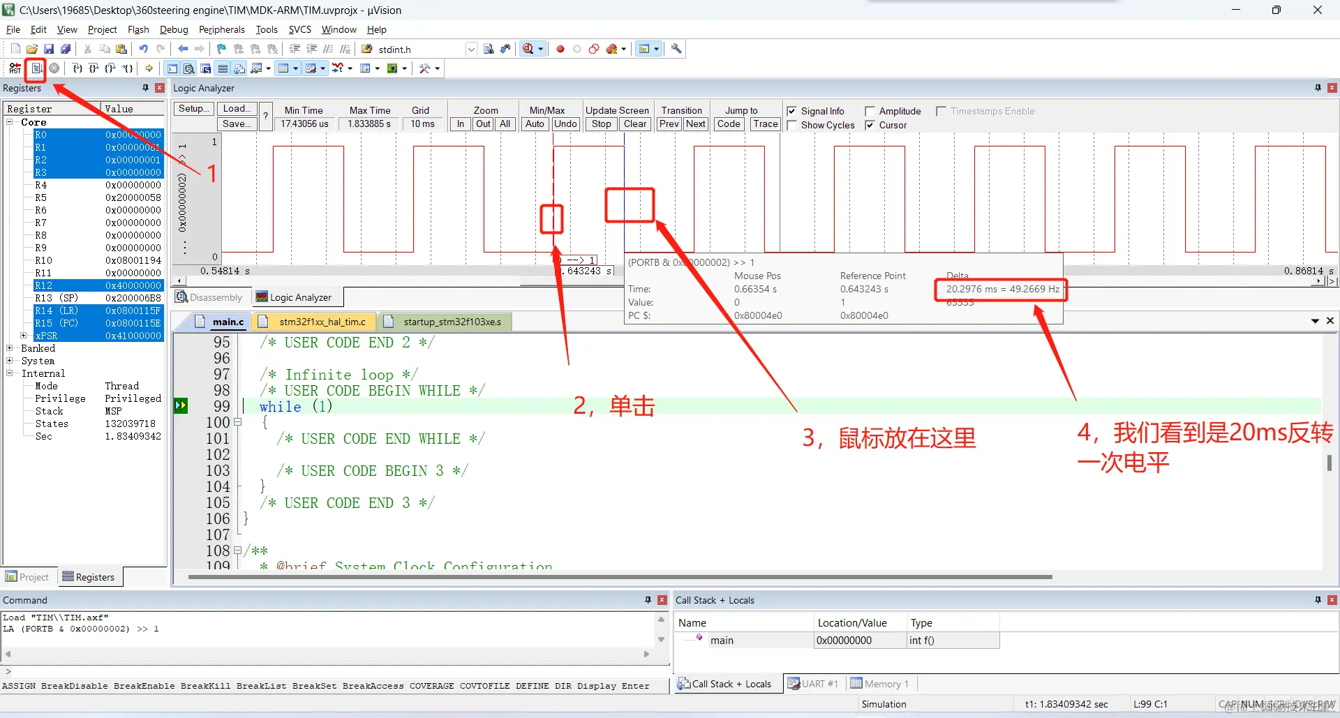 (1)这里需要做两步工作,第一步是再main函数中打开定时器中断。第二部是编写中断函数。