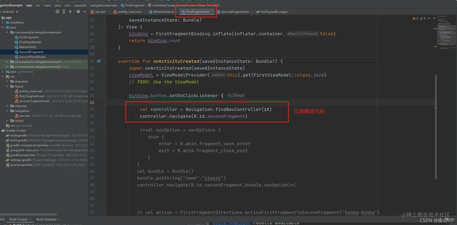 第五步:在FirstFragment中,设置好跳转