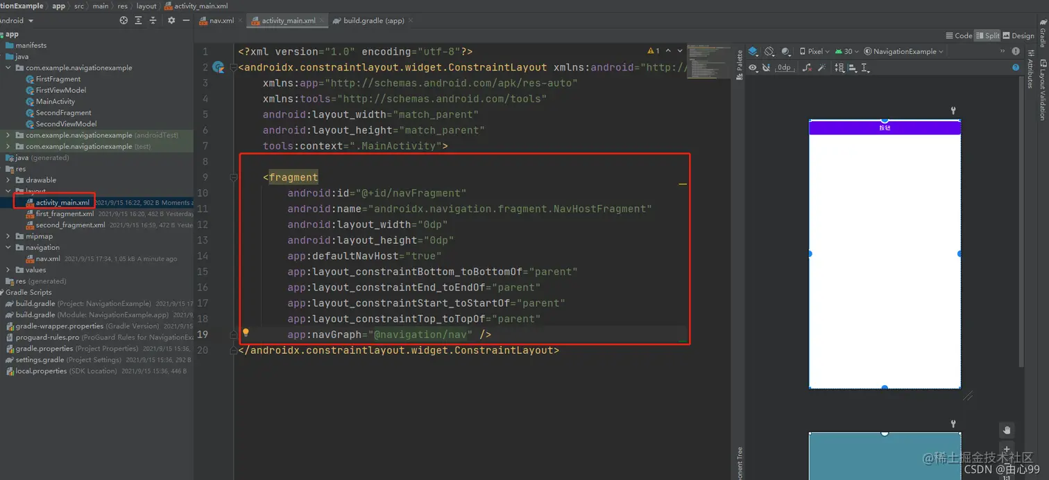第四步:在activity_main.xml里面使用我们刚才建立好的nav.xml文件