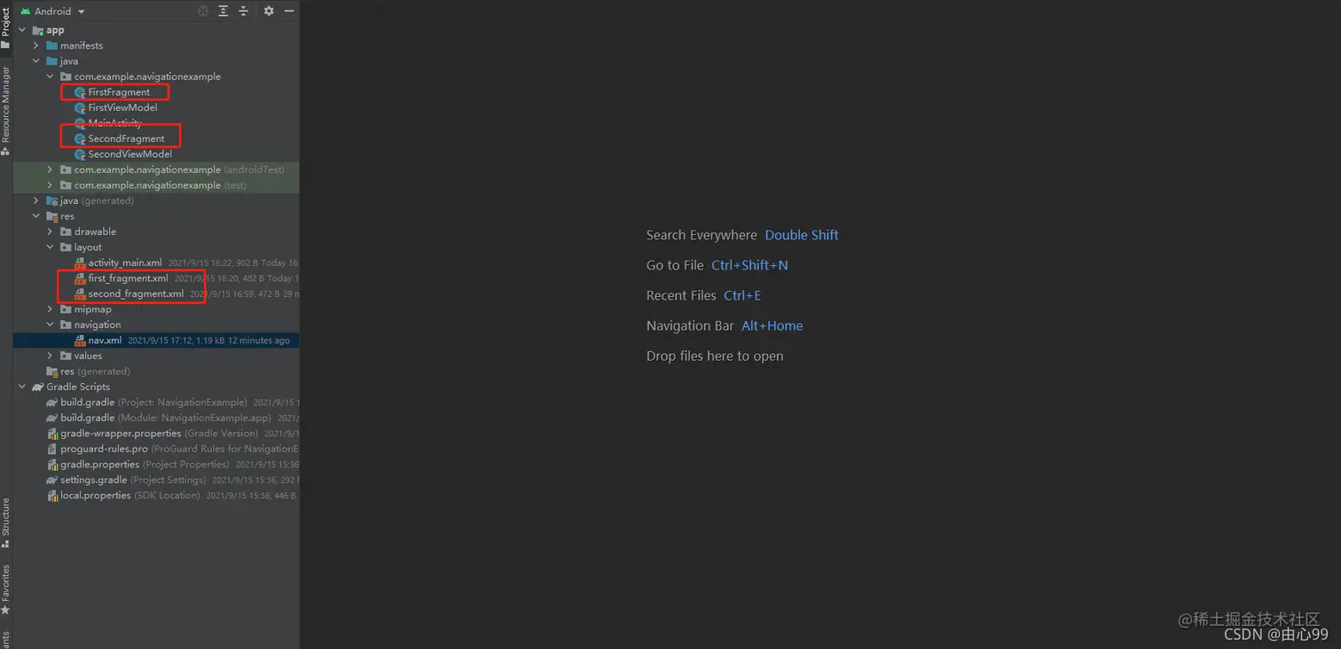 第一步:添加依赖,再建立好两个fragment(用于演示fragment之间的跳转)