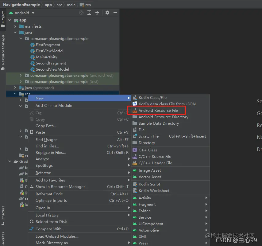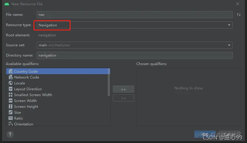 第二步:在res文件夹下,新建一个navigation的文件夹,并创建文件