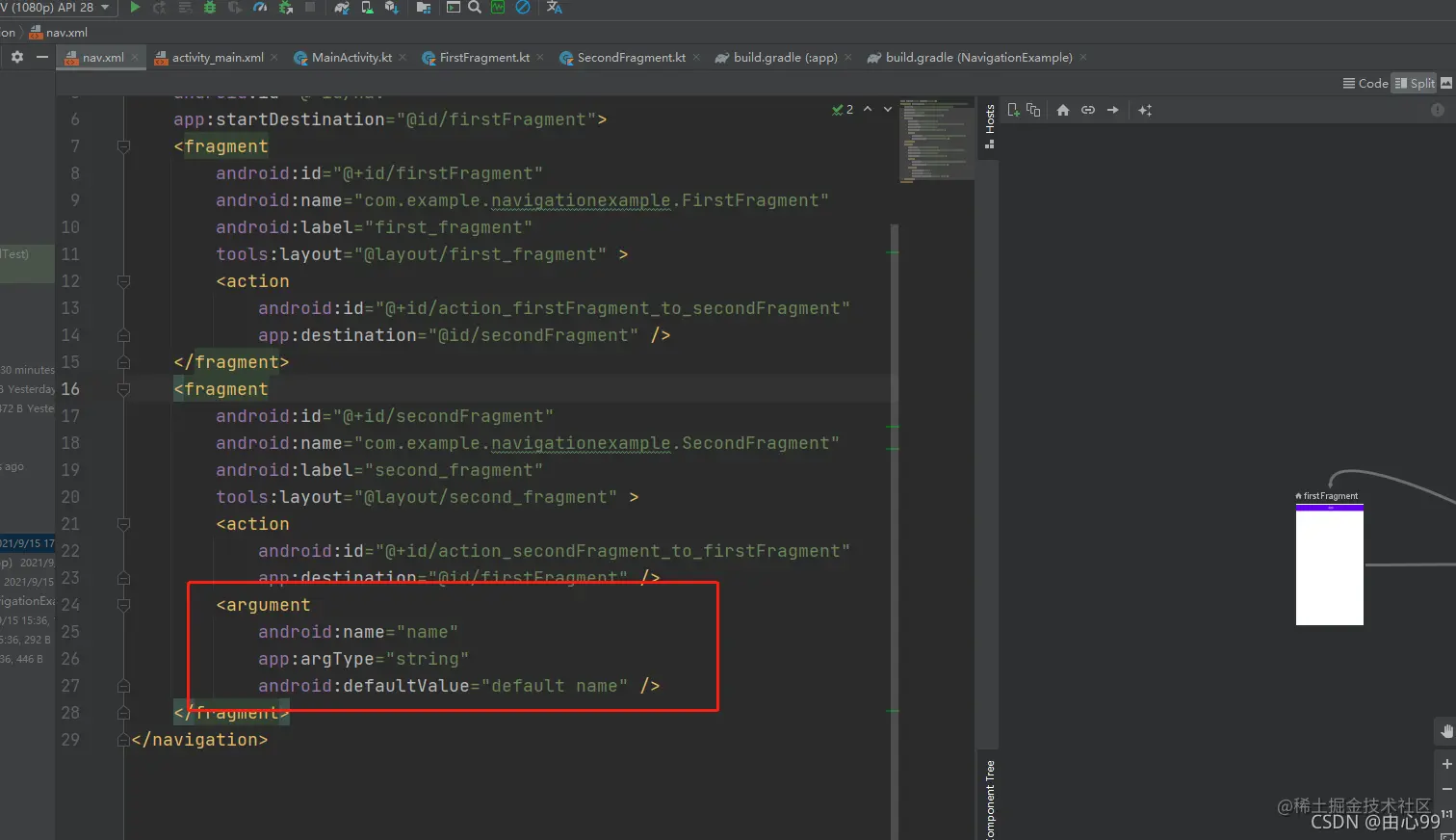 在导航图中添加 标签。我们可以直接在Text中编写XML代码,也可以通过Design面板添加