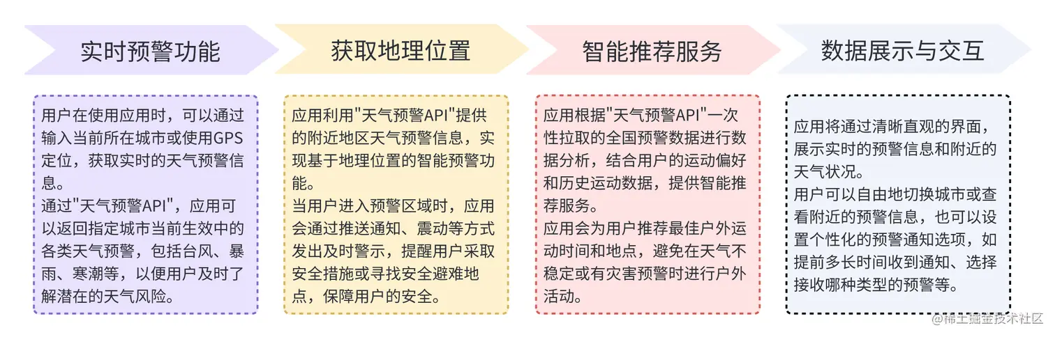 户外运动是一种受欢迎的健康活动,我们利用"天气预警API"开发一款智能预警应用,提前预知灾害,为用户的户外活动增添安全保障。