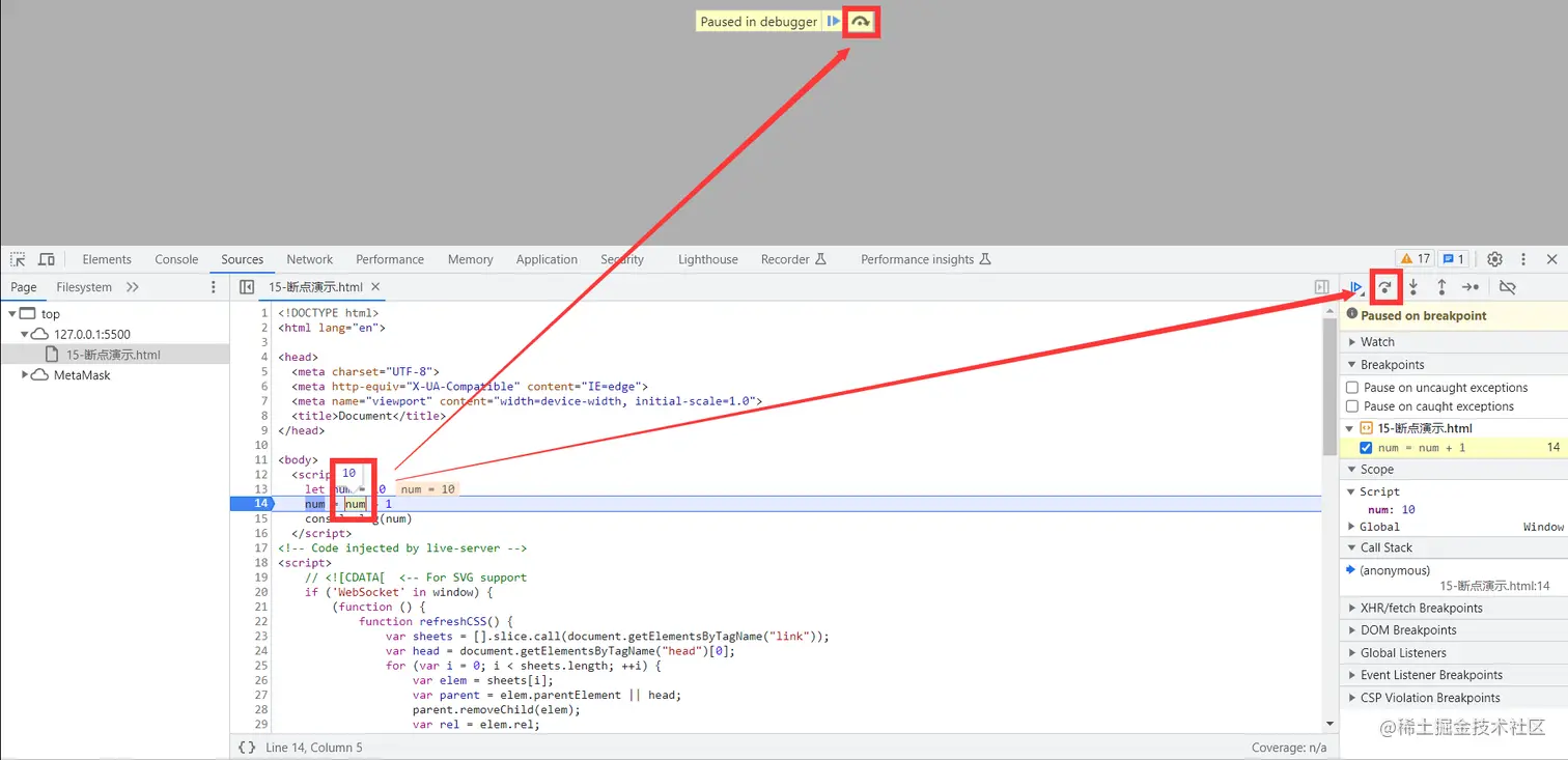 - 重新刷新,鼠标放在代码变量上即可看见当前变量保存值。
