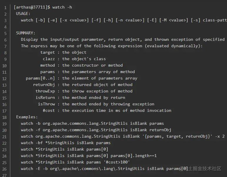 通过watch命令可以查看函数的参数、返回值、异常信息。