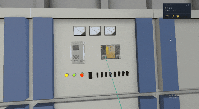 图扑 HT 支持在三维仿真场景内与实体设备交互操作,工作人员在虚拟环境下对变电站内电柜进行分/合闸等一系列模拟训练操作,规避风险,减少训练成本,确保变电站安全、稳定、可靠运行。