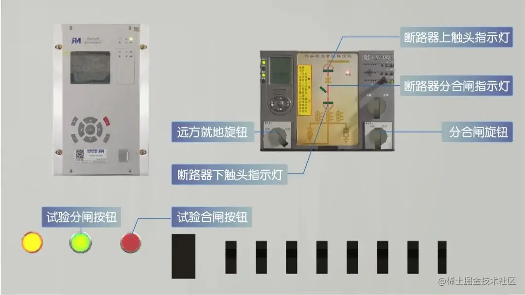 - 在 35kV 室开关柜中常见的开关包括断路器和刀闸,用于隔离电路、切换供电源和保护主母线及相关设备。通常使用远方/就地旋钮、分闸/合闸旋钮这两类控制装置控制开关柜的操作和状态。