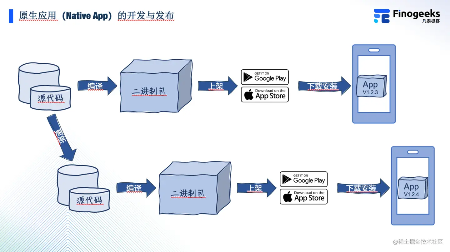 其实整个开发和发布的流程就是将开发好的源代码编译为二进制包再上架到安卓、iOS的应用商店。