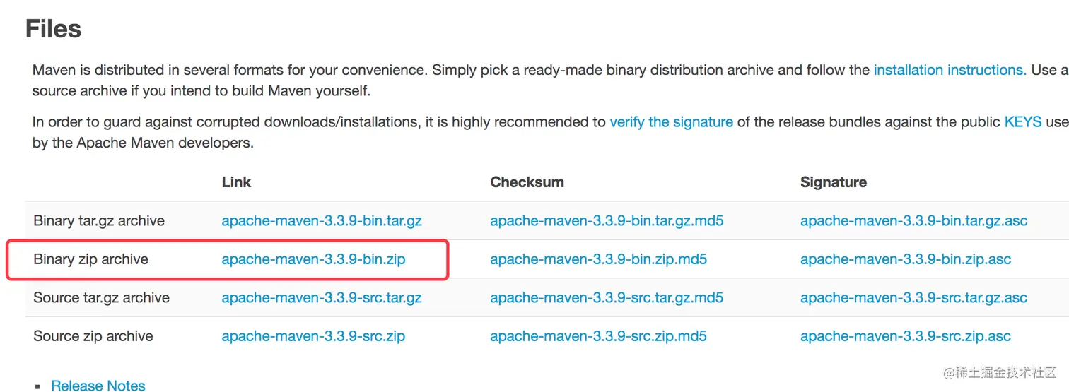 首先呢我们从官网上下载相应版本的Maven(Maven官方下载地址请戳我)。因为我的是OS X系统,所以我下载的是下方这个。点击下载后解压备用即可。
