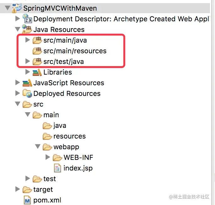 经过这些步骤,我们的错误就解决完毕了。这时候你在看我们创建的工程时,错误已经不存在了,而且多了一些目录,如下所示: