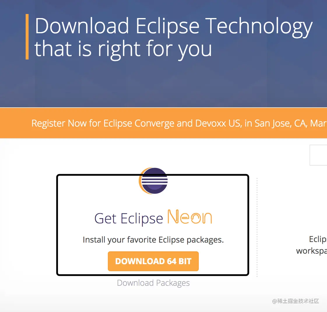 我们先从Eclipse的官网上下载Eclipse Installer,然后通过Eclipse Installer安装相应的Eclipse(Eclipse Installer的下载地址请戳我)。 打开后点击下方的按钮下载即可。