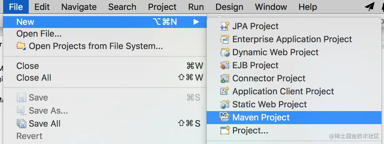 新建Maven工程:File -> New -> Maven Project,具体如下所示: