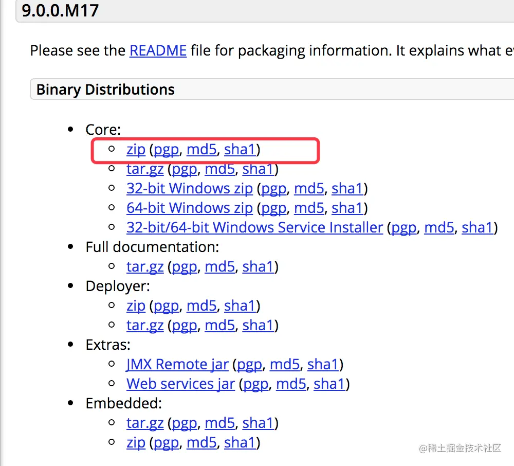 点击相应的版本后,我们可以根据相应的平台去下载相应版本的Tomcat即可,因为本篇博客基于Mac OS X系统,所以此处下载的是zip包,如下所。