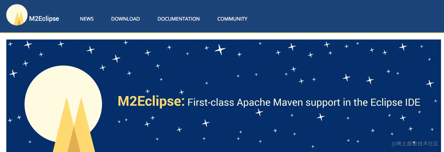 Maven安装完毕后,为了方便开发,我们还需要为Eclipse来安装Maven插件----M2Eclipse(M2Eclipse的介绍与安装的官方地址请戳我)。在Eclipse官网上给出了M2Eclipse插件的安装地址,下方是M2Eclipse的首页。