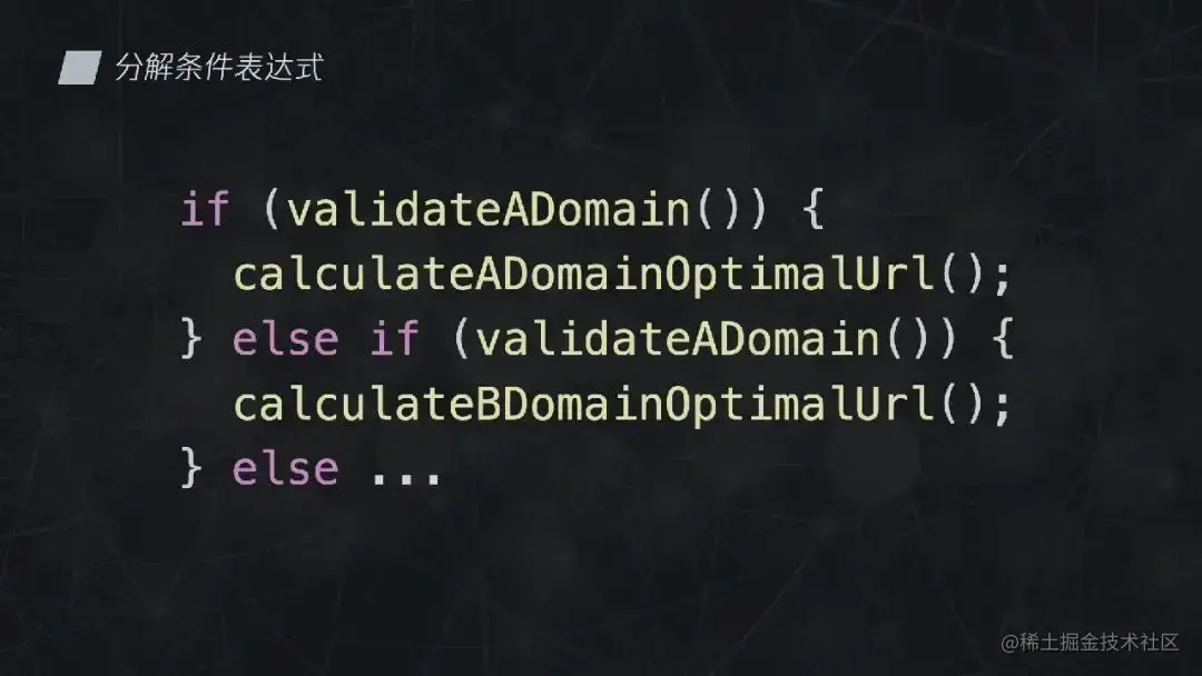 这里不得不提一个与软件质量息息相关的指标:圈复杂度。根据维基百科的定义,“圈复杂度是一种软件度量,用来表示程序的复杂度,循环复杂度由程序的源代码中量测线性独立路径的个数”。处理单个域名的逻辑已经超过了 10 个圈复杂度,每加一个新域名,圈复杂度就会线性增加 10,那可想而知,再增加几个新域名,这段逻辑的复杂程度可就高到难以理解了。因此,对这段代码重构迫在眉睫。