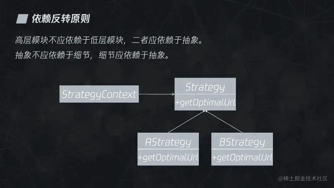 但是要提一句,这里说推荐采用依赖反转原则,并不是说要把这个原则当做金科玉律,因为实际开发中会不可避免地依赖一些具体的实现。