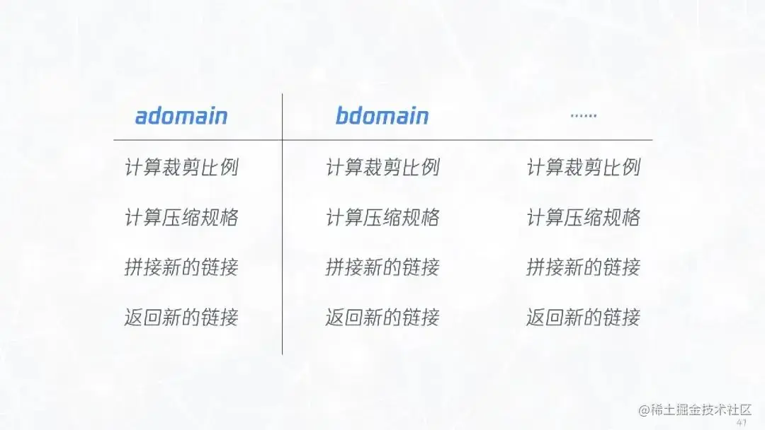 进一步分析,发现无论是 A 域名还是 B 域名,或者是其他任何域名,处理逻辑具有相同部分,即“计算裁剪比例” -> “计算压缩规格” -> “拼接新的链接” -> “返回新的链接”。
