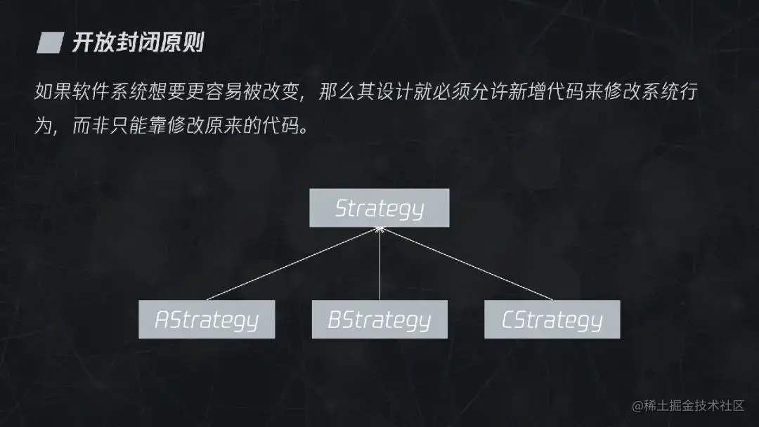回想一下我们的日常工作,一般都是接一个需求就改一次代码,虽然一次两次无伤大雅,但这种对代码持续性修改的行为往往会对代码造成巨大伤害,导致维护成本越来越高。既然修改行为会给代码引起很多问题,那能不能不修改呢?你可能认为我在说痴话,但开放封闭原则就给我们提供了这样一个方向。