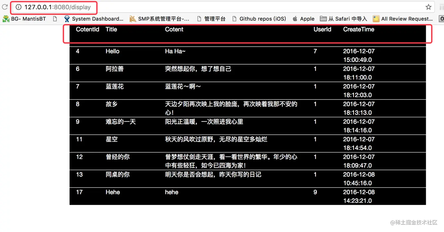 创建完展示用的模板后,接下来我们要做的事情就是要对其进行访问了。下方截图就是我们最终的访问结果。