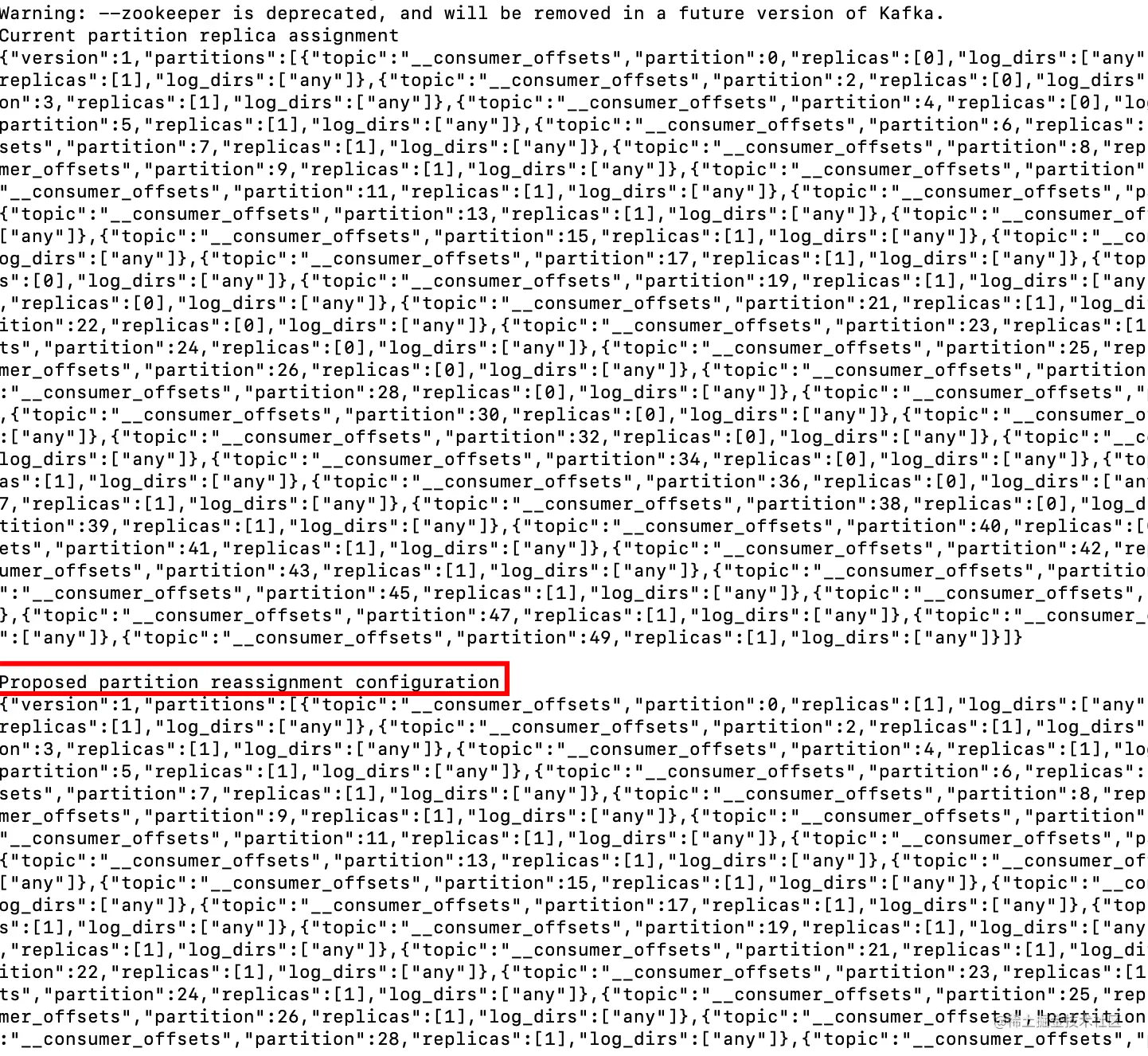 然后通过kafka-reassign-partitions.sh脚本使用下面的命令生成数据迁移推荐方案,例如需要把broker 0上的__consumer_offsets迁移到broker 1上: