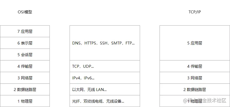 TCP/IP 协议族分层方式与 OSI 分层的同异,如下图:
