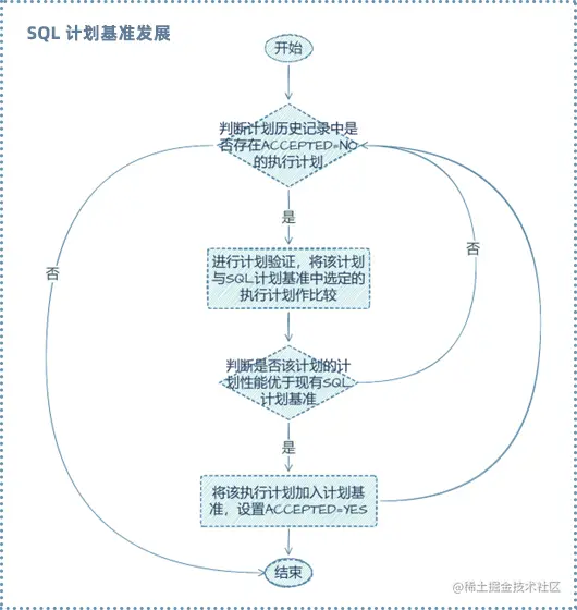 - 仅当其性能比现有SQL计划基准更佳时才接受新计划,逻辑如下图