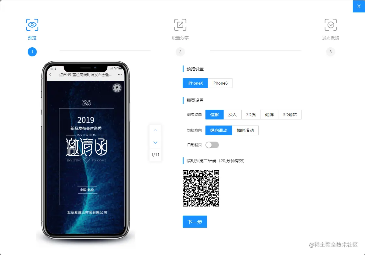 制作完H5页面后,H5DS编辑器还提供了下载分享的功能,让我们的作品不仅可以在网页上展示,还可以方便地分享给朋友、客户或社交媒体上的粉丝。